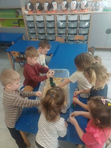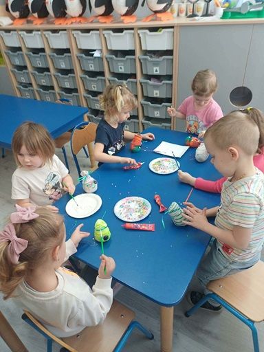 W tym tygodniu odbyły się warsztaty sensoryczne prowadzone przez Panią pedagog specjalną Dominikę Szymule- Polilejko, na których dzieci tworzyły własne krasnale ze skarpetek. Użyli do tego m.in. ryżu, kaszy gryczanej, makaronu. Powstałe śliczne, kolorowe krasnale.